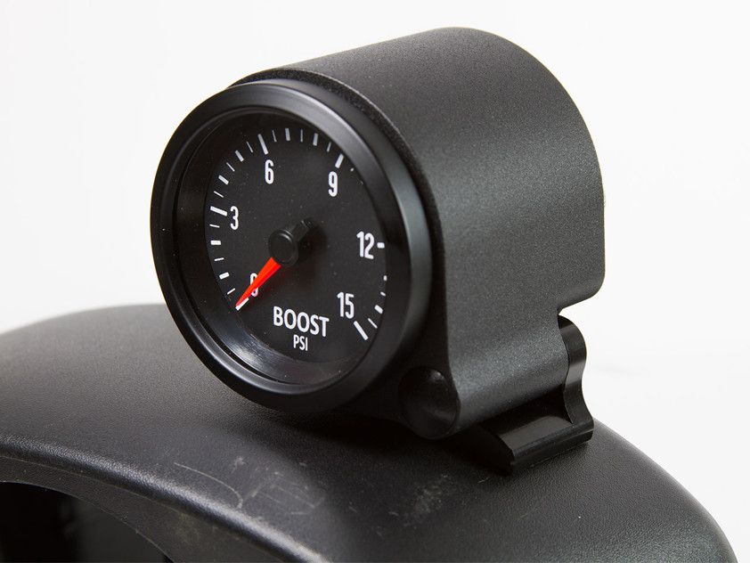 By bolting the Belmont to your steering column, you are able to securely mount a gauge directly to the column where you can see it. The gauge can pivot to adjust to your line of sight, while being securely and cleanly mounted. There are no visible marks on the gauge cup and the back is covered by a modifiable plastic plate.